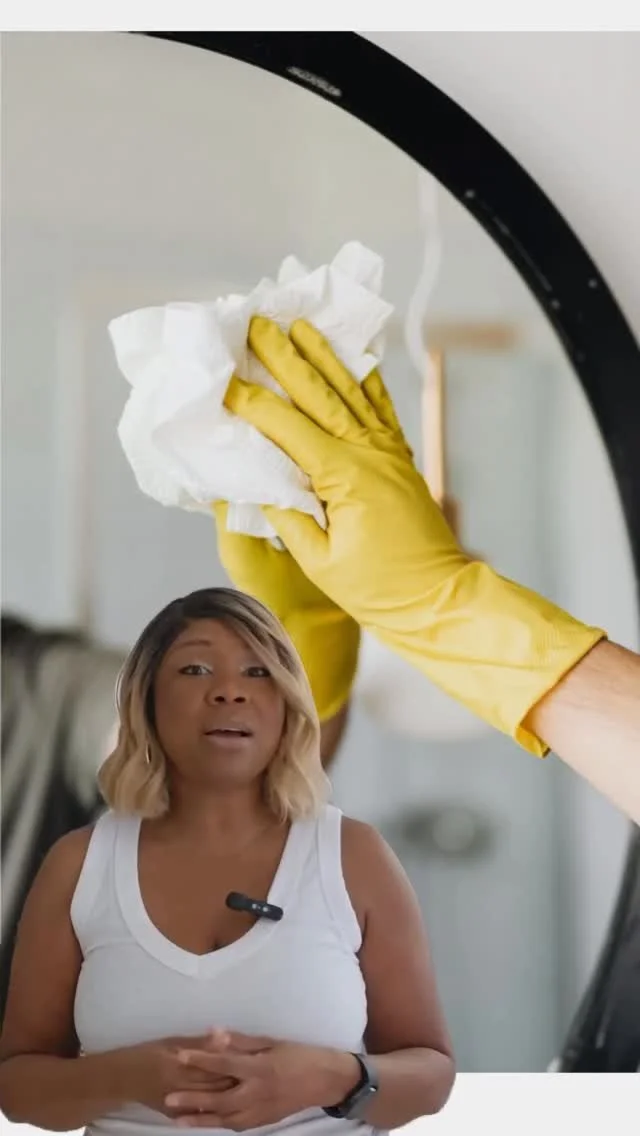 Rinse and polish mirrors, glass, and chrome fixtures
